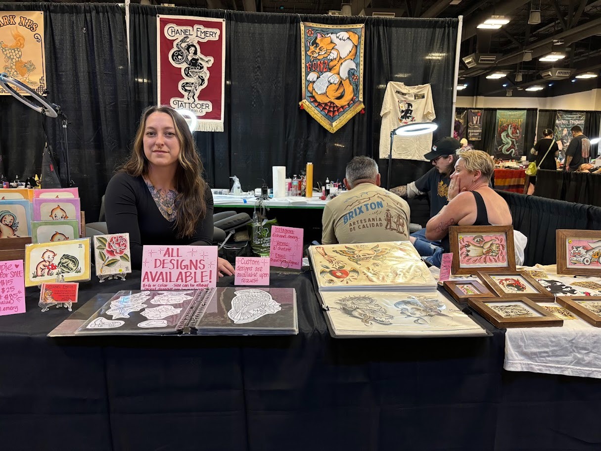 Tattoo artist Chanel Emery, 32, attended the convention as part of Golden Days Tattoo based in San Diego. Although she’s tattooed professionally for six years, her love for the artform began when her mother took her to a tattoo convention around the age of 7. Emery says the biggest change she’s witnessed over the last two decades is the widened inclusivity of the tattoo community.